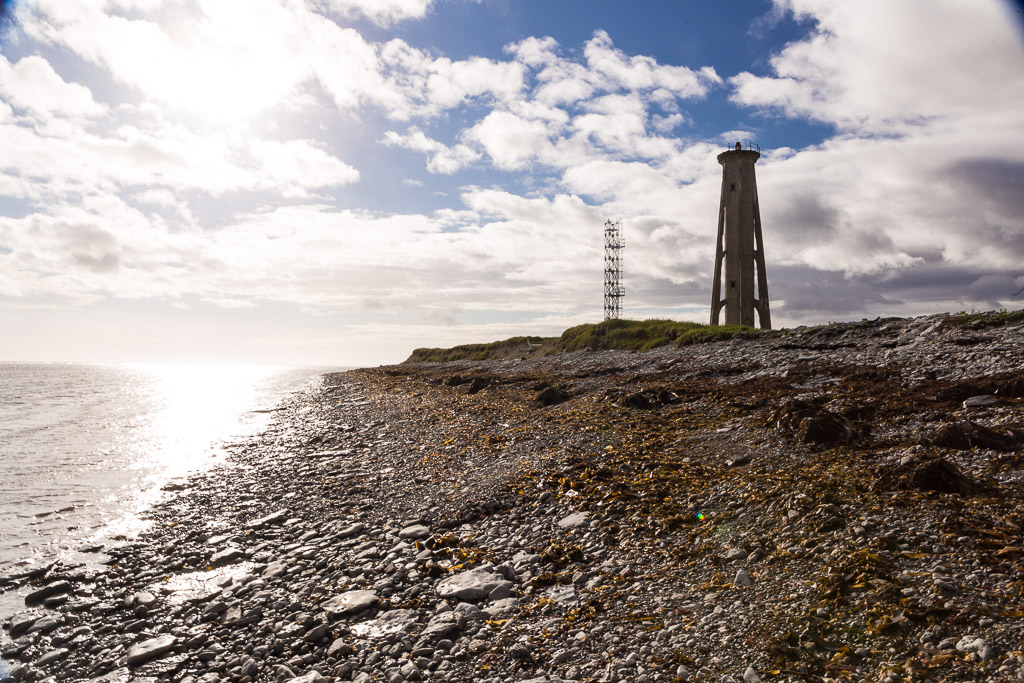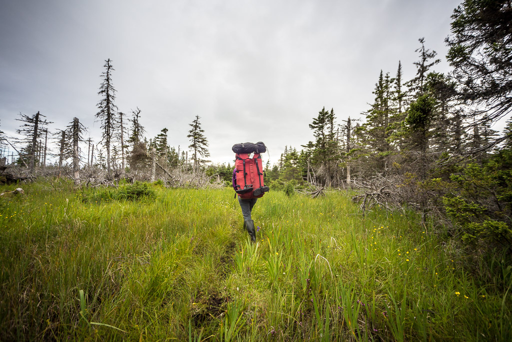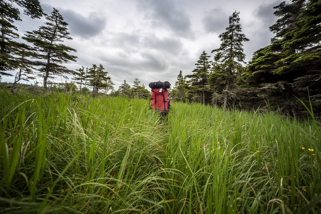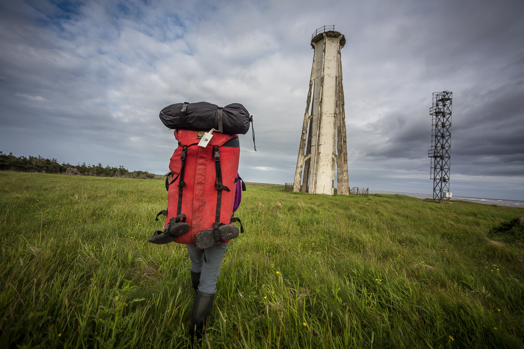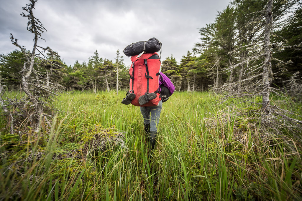 La randonnée dure environ 45 minutes. On marche à un bon rythme. On traverse une tourbière et c'est très humide pour les pieds. On doit franchir plusieurs petits ruisseaux, mais ce qui est le plus mouillant, ce sont les trous d'eau cachés dans les herbes hautes. C'est une fois rendu les pieds dedans qu'on découvre leur présence. À un certain moment, on aperçoit le phare à notre gauche, qui semble assez près. Mais le GPS indique qu'on doit traverser une zone encore plus humide si on veut y aller en ligne droite. Avec la pluie des derniers jours et la crainte d'avoir de l'eau jusqu'aux genoux, on continue vers le sud pour rattraper la mer et ensuite se rendre au phare en longeant la plage.