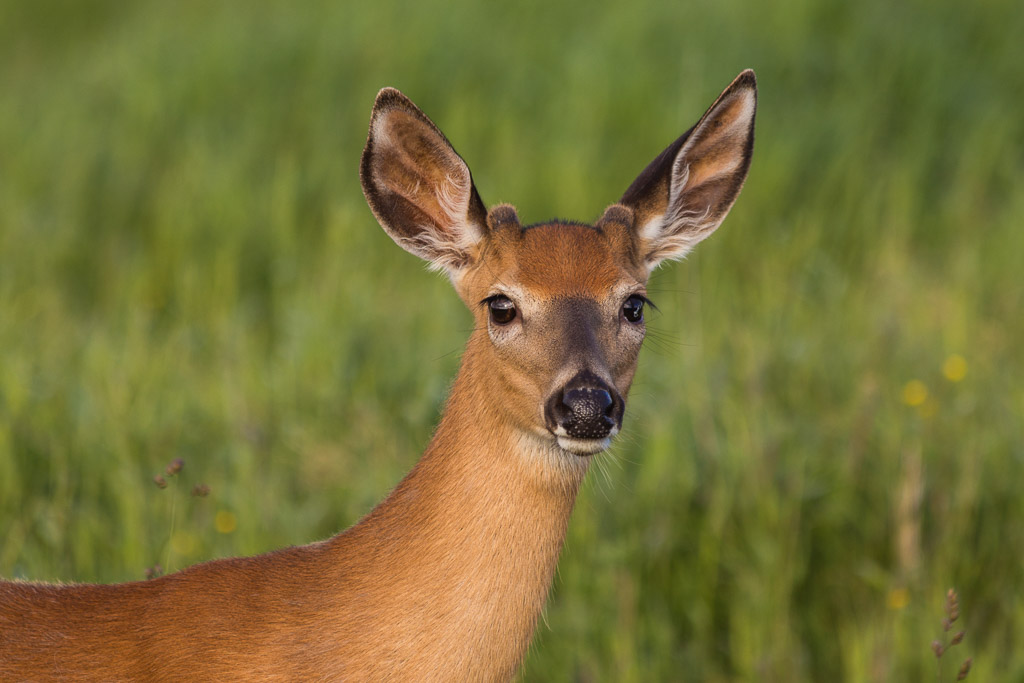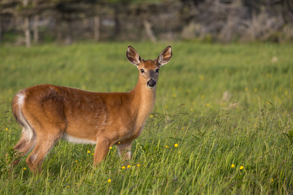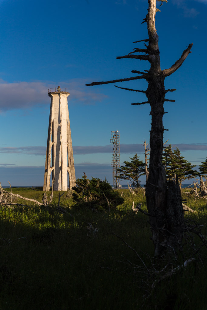 Pour ma part, je prends une trentaine de minutes pour faire des photos. Je profite des arbres morts de la tourbière pour faire des premiers plans avec le phare en arrière. Plusieurs cerfs sont présents sur le site. Il y en a un qui ne me trouve pas du tout effrayant. Il continue à manger en me guettant et en s'approchant au point de remplir mon viseur avec un objectif 300mm.