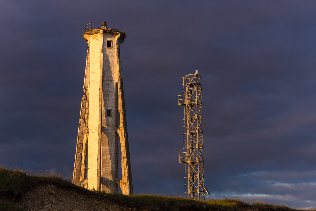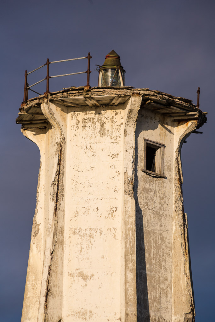Le phare de Pointe-Sud, aussi appelé phare de l'Escarpement Bagot, a été construit autour de 1912 et ressemble beaucoup à celui de Pointe-au-Père, avec ses six arcs-boutants en béton. Il mesure plus de 24 mètres (80 pieds) de haut. Les résidences qui l'entouraient n'existent plus depuis plusieurs années. De plus, on l'a privé de sa lanterne, ce qui fait qu'il a un style bien particulier, différent de ce qui m'a été donné de voir des phares québécois. Heureusement, le site du phare est magnifique et vient équilibrer la structure austère. Je suis très heureux d'enfin pouvoir ajouter à ma collection l'un des phares les moins photographié du Saint-Laurent.